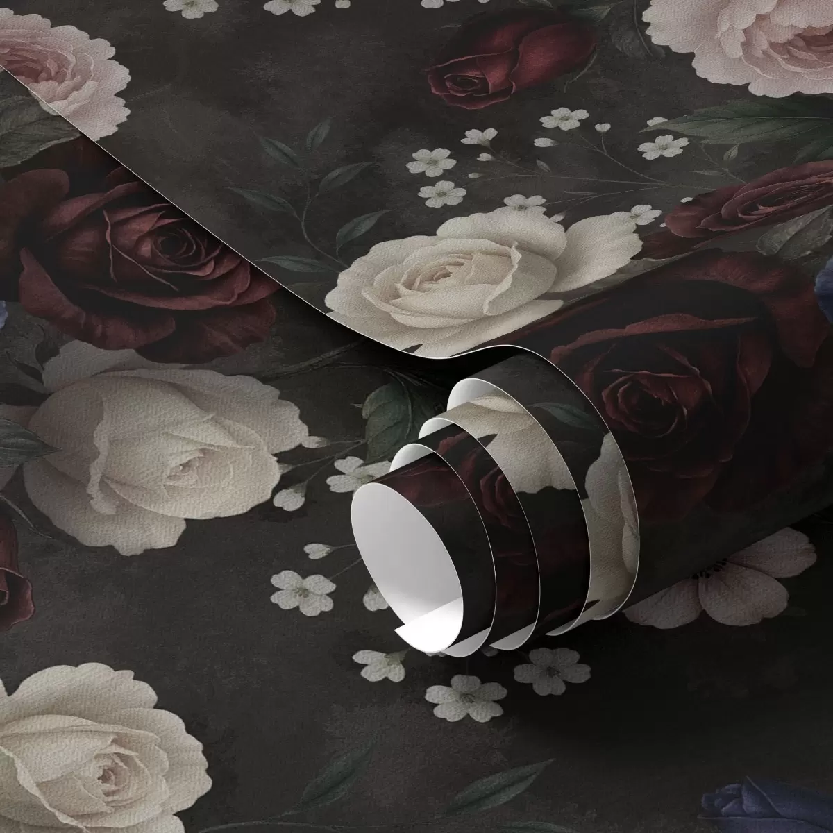 Papel tapiz Rosas oscuras, anémonas y peonías sobre un fondo intenso Nr. a00704