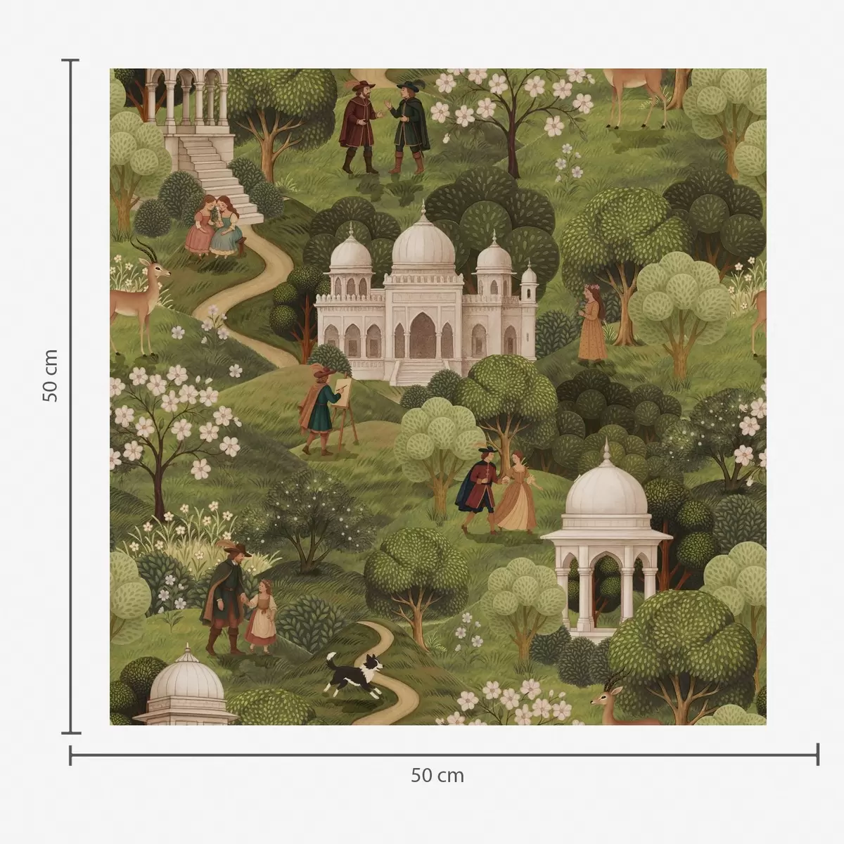 Papel tapiz Escena de parque con árboles y arquitectura en estilo paisajístico Nr. a00705