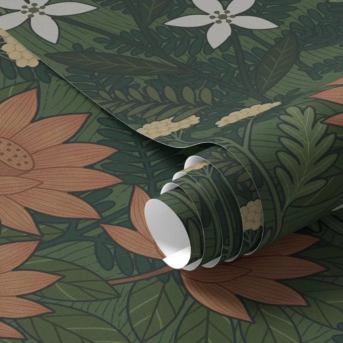 Papel tapiz Grandes flores entre follaje verde, composición decorativa Nr. a00708