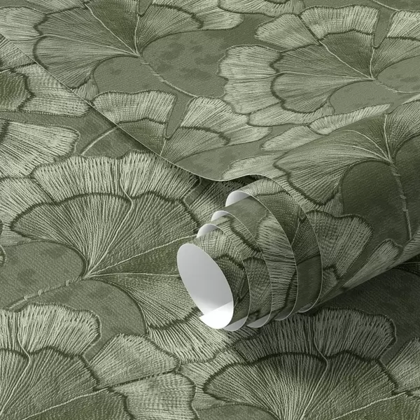 Papel tapiz Diseño gráfico con ginkgo en una paleta de colores verdes fríos Nr. a00709