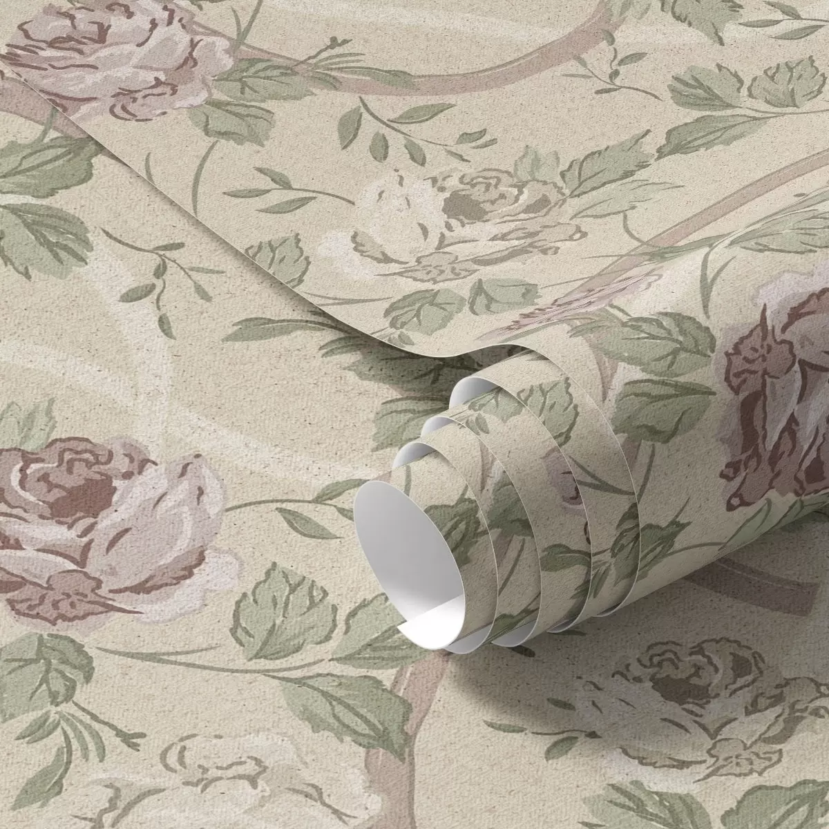 Papel tapiz Rosas con hojas verdes sobre un fondo beige cálido Nr. a00729