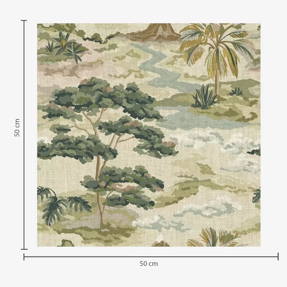 Papel tapiz Paisaje con río, árboles y palmeras en tonos suaves Nr. a00736