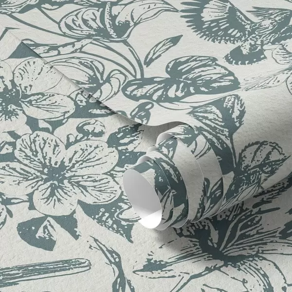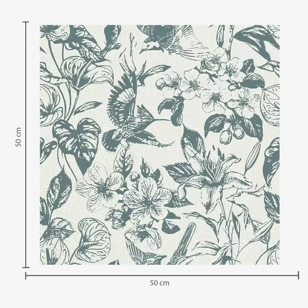 Papel tapiz Adorno floral monocromático con pájaros Nr. a00737