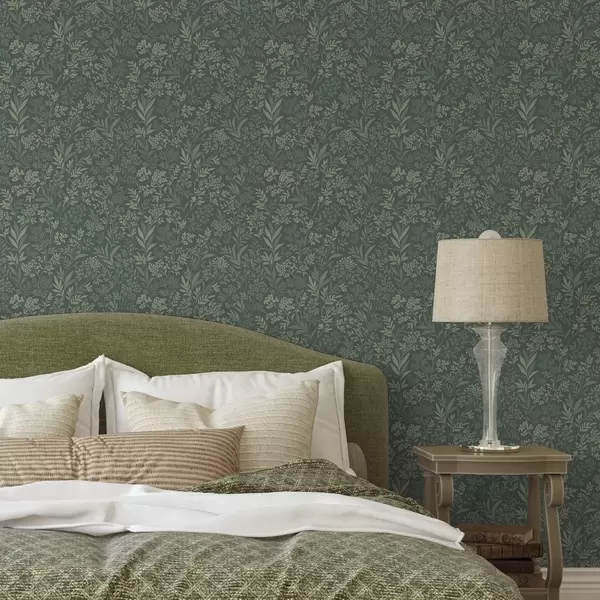 Papel tapiz Hierbas y bayas esmeralda, delicado diseño botánico Nr. a00740