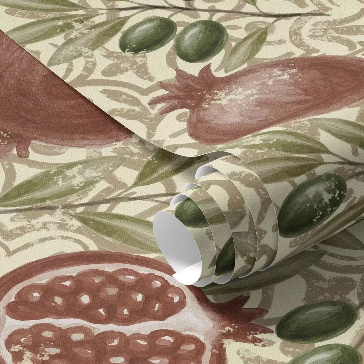 Papel tapiz Granada y ramas de olivo sobre fondo ornamental Nr. a00764