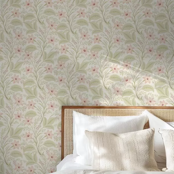 Papel tapiz Delicadas flores y hojas en tonos pastel Nr. a00771