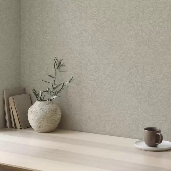 Papel tapiz Siluetas de hojas en relieve, cálido color topo Nr. a00781
