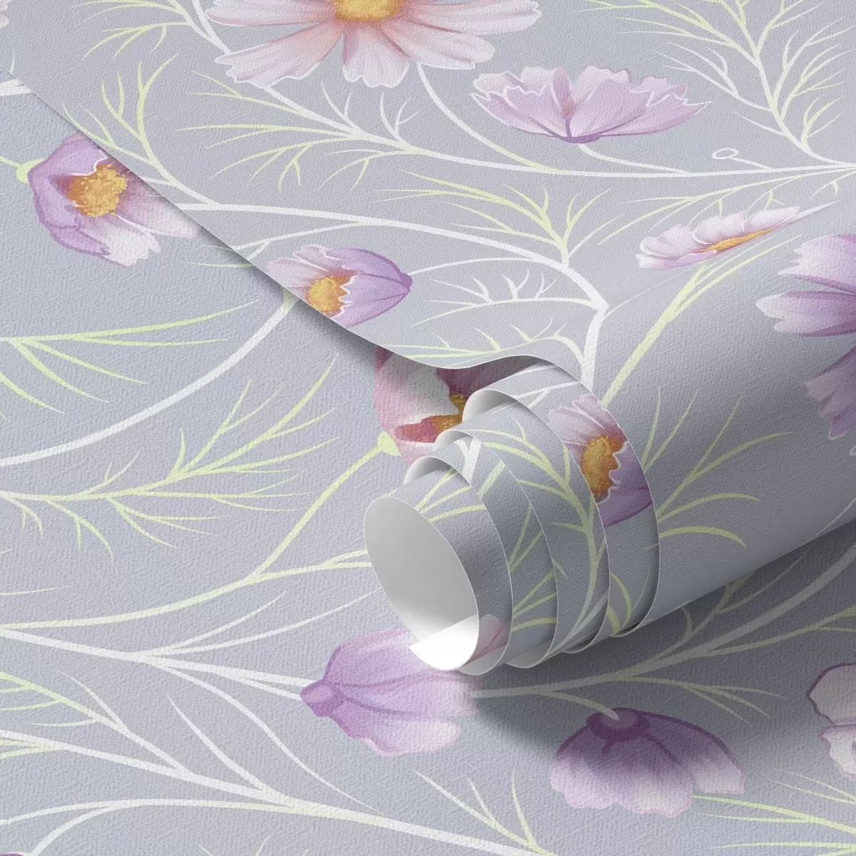 Papel tapiz Cosmos rosados y tallos delgados sobre fondo gris Nr. a00791
