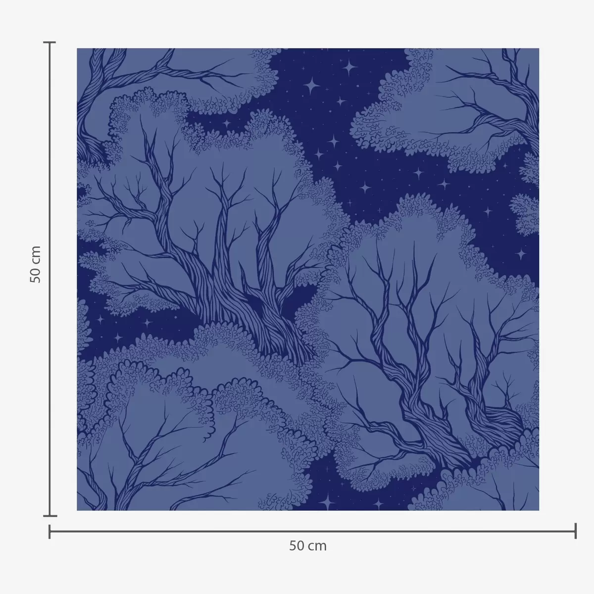 Papel tapiz Siluetas de árboles bajo un cielo estrellado en tonos azules Nr. a00798