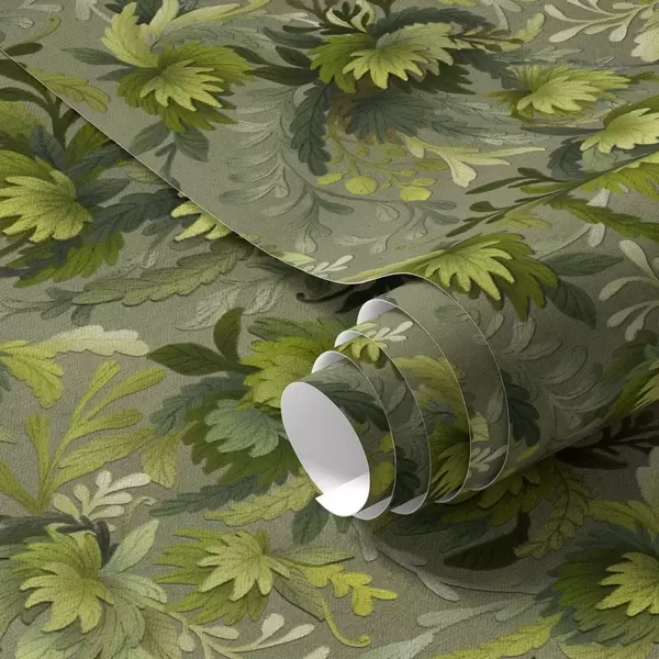 Papel tapiz Denso follaje verde sobre un fondo gris verdoso Nr. a00805v1
