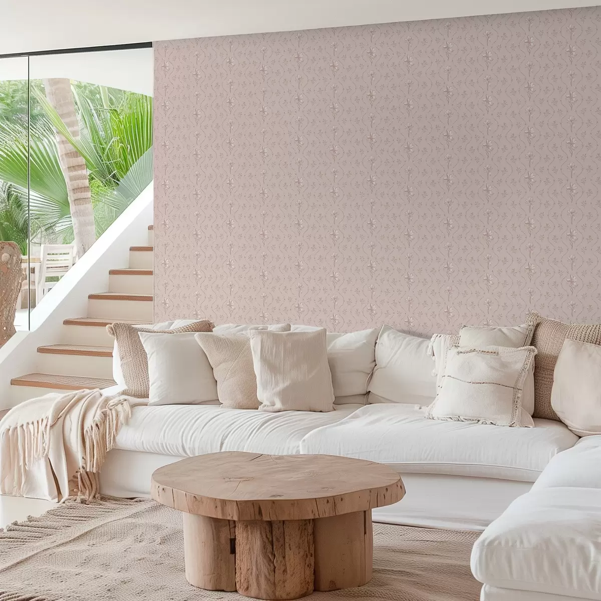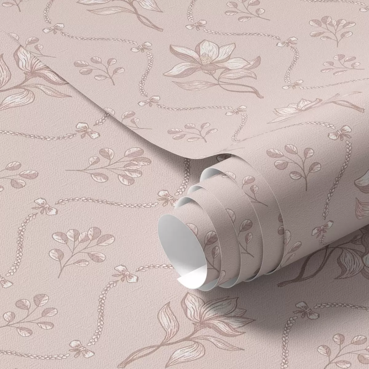 Papel tapiz Pequeñas flores y cintas en suaves tonos rosa y beige Nr. a00808