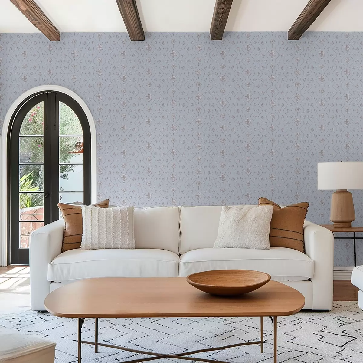 Papel tapiz Pequeñas flores y cintas en tonos azul pálido Nr. a00808v1