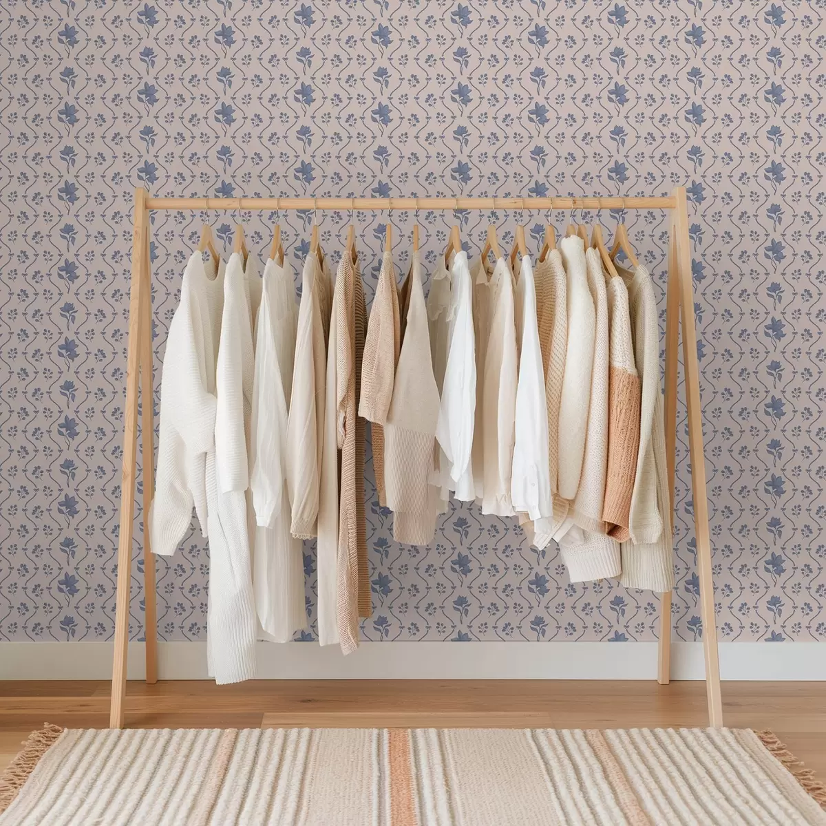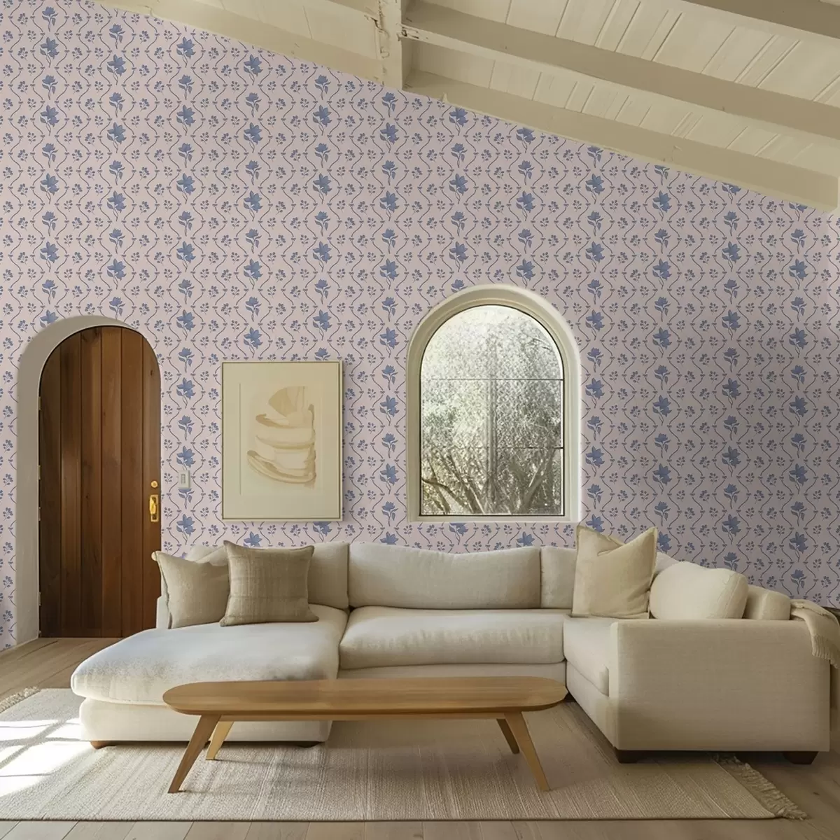 Papel tapiz Pequeñas flores y cintas en tonos azules y rosas Nr. a00808v3