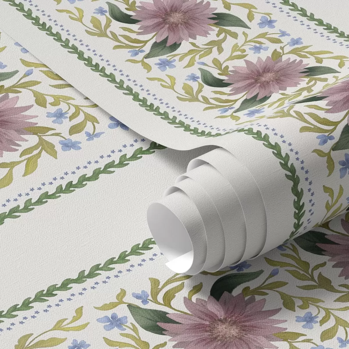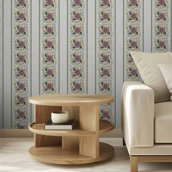 Papel tapiz Rayas florales verticales en tonos azul lila Nr. a00809