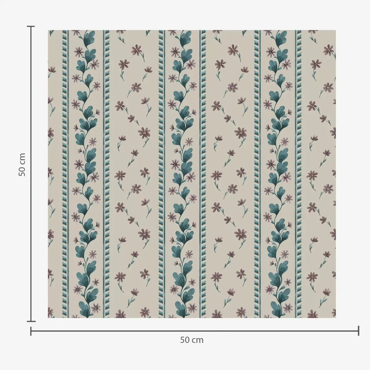 Papel tapiz Rayas florales verticales en tonos azul y marrón Nr. a00811v1