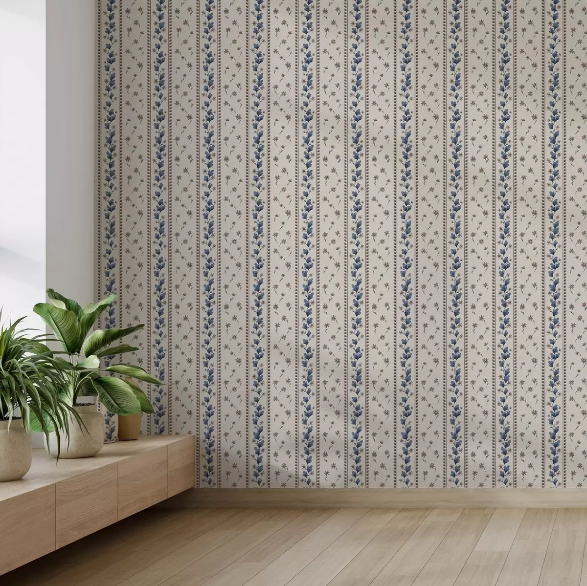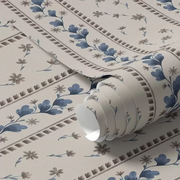 Papel tapiz Rayas florales verticales en tonos azul y marrón Nr. a00811v3