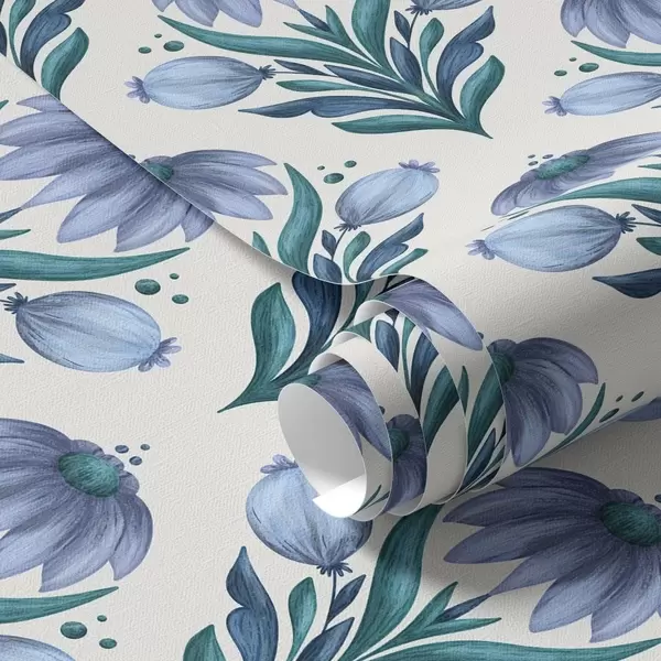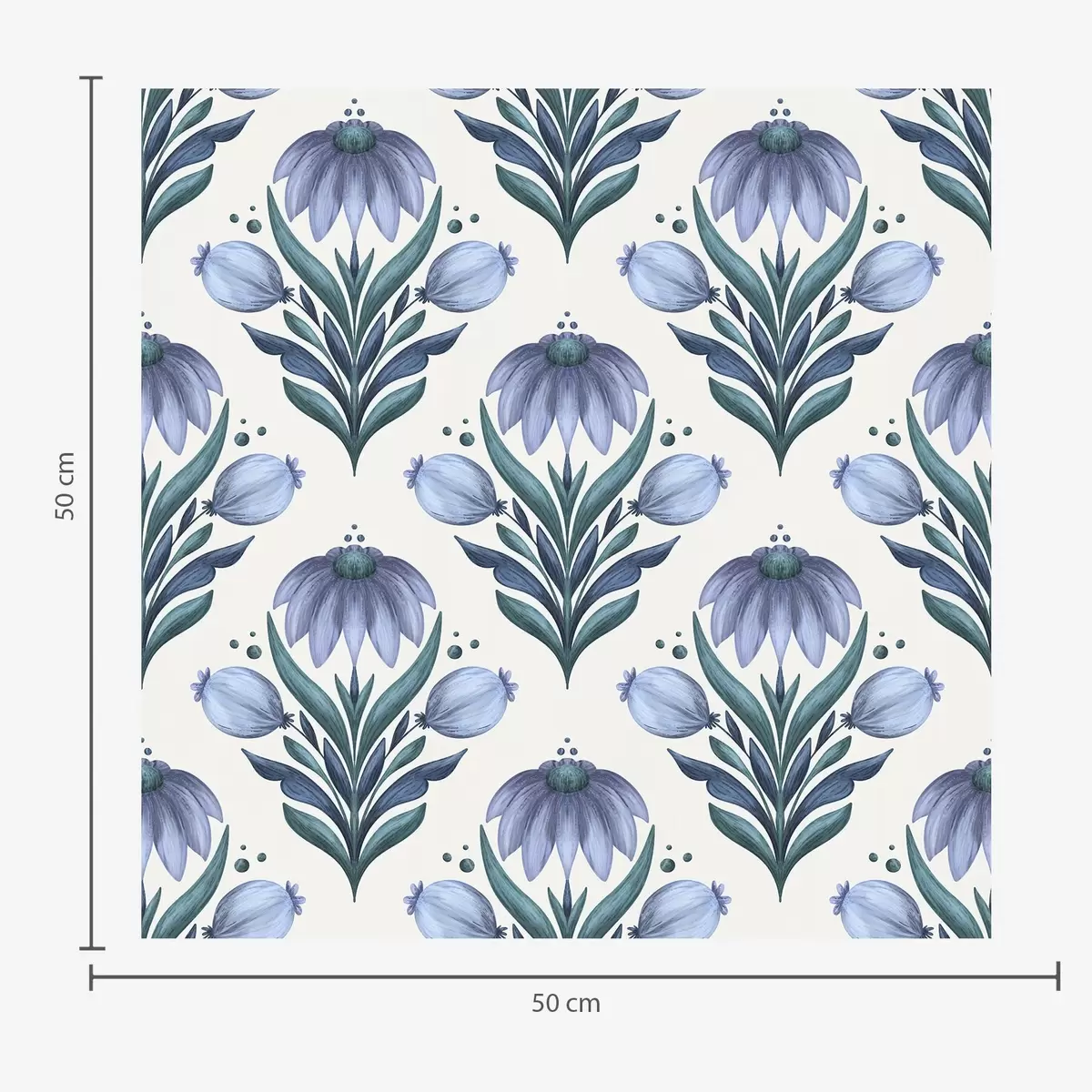 Papel tapiz Adorno floral simétrico en tonos azul y blanco Nr. a00812v2