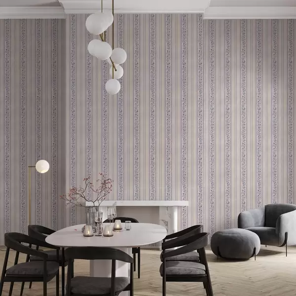 Papel tapiz Rayas verticales con viñetas lavanda, beige cálido Nr. a00813