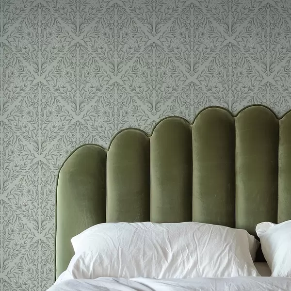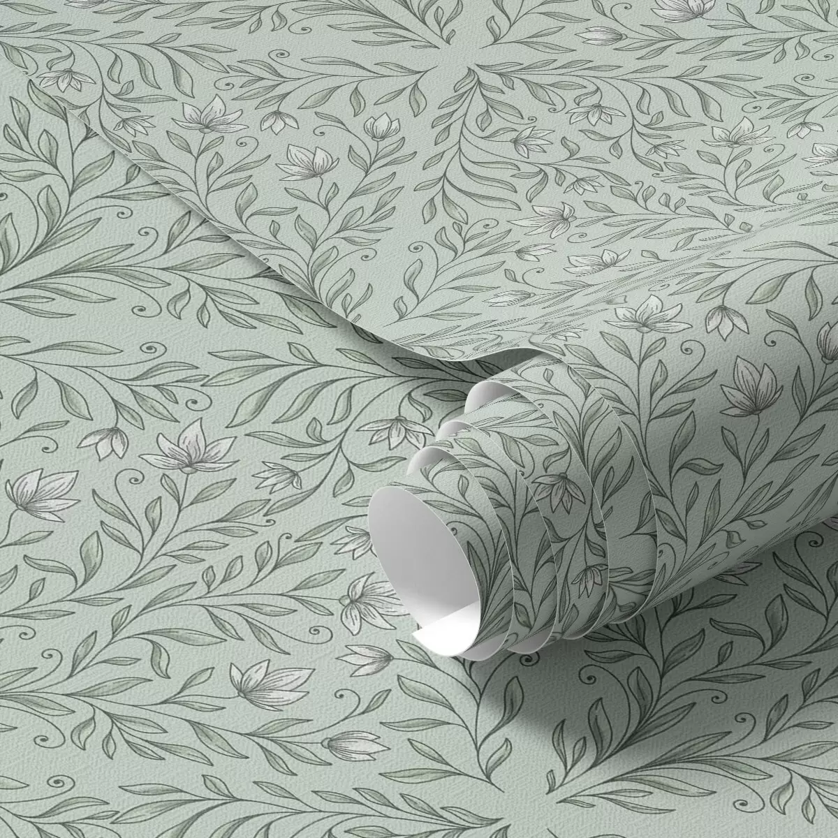 Papel tapiz Lacy dispara sobre un fondo verde pastel, con una suave profundidad. Nr. a00815v3