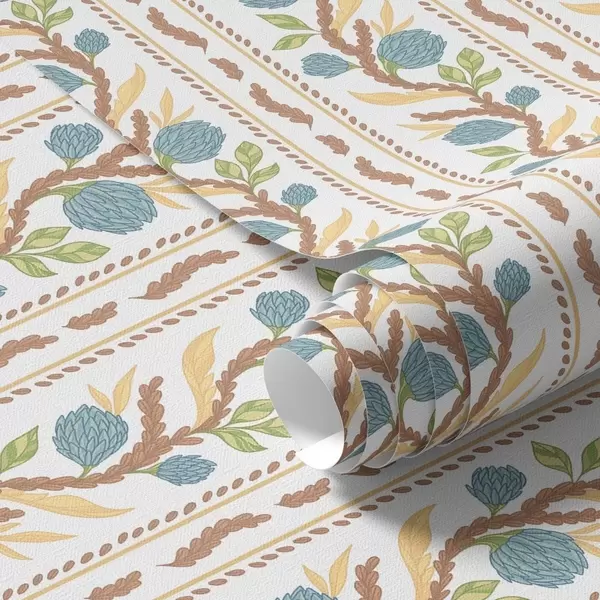 Papel tapiz Rayas verticales con flores azules Nr. a00816v2