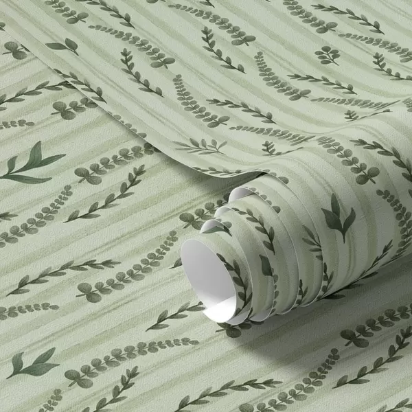 Papel tapiz Hierbas verdes densas y brotes de menta con rayas Nr. a00819