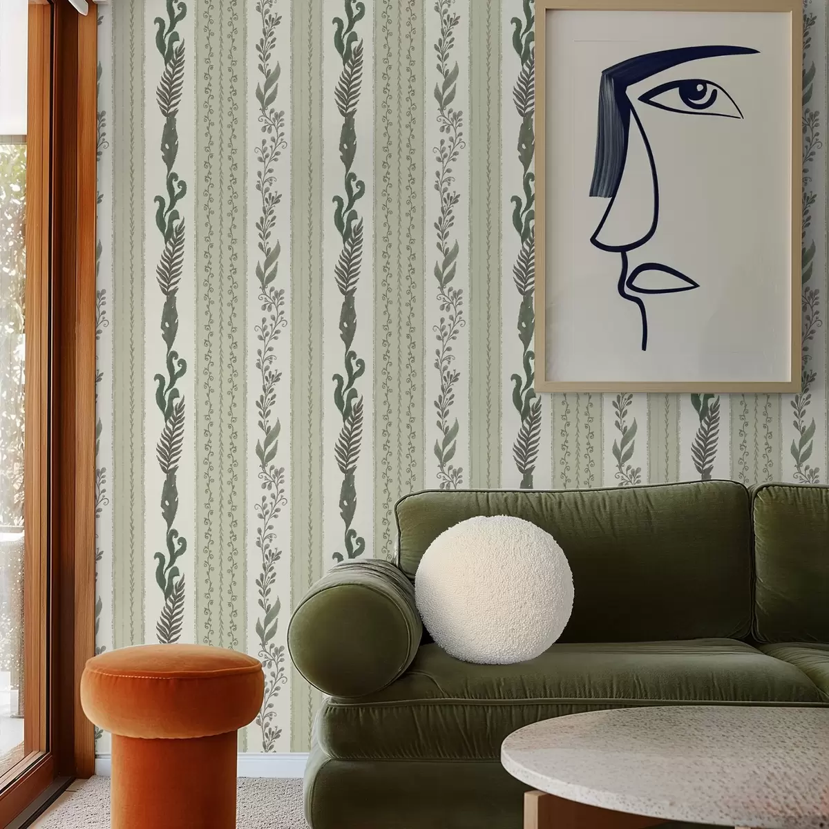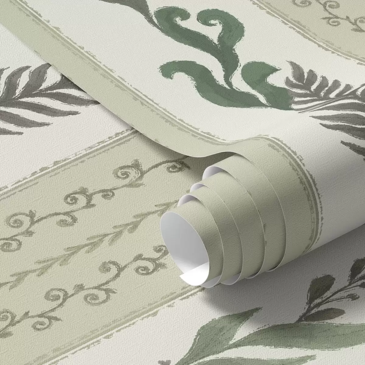 Papel tapiz Rayas con ramificaciones en tonos verdes y grises, contraste suave Nr. a00824