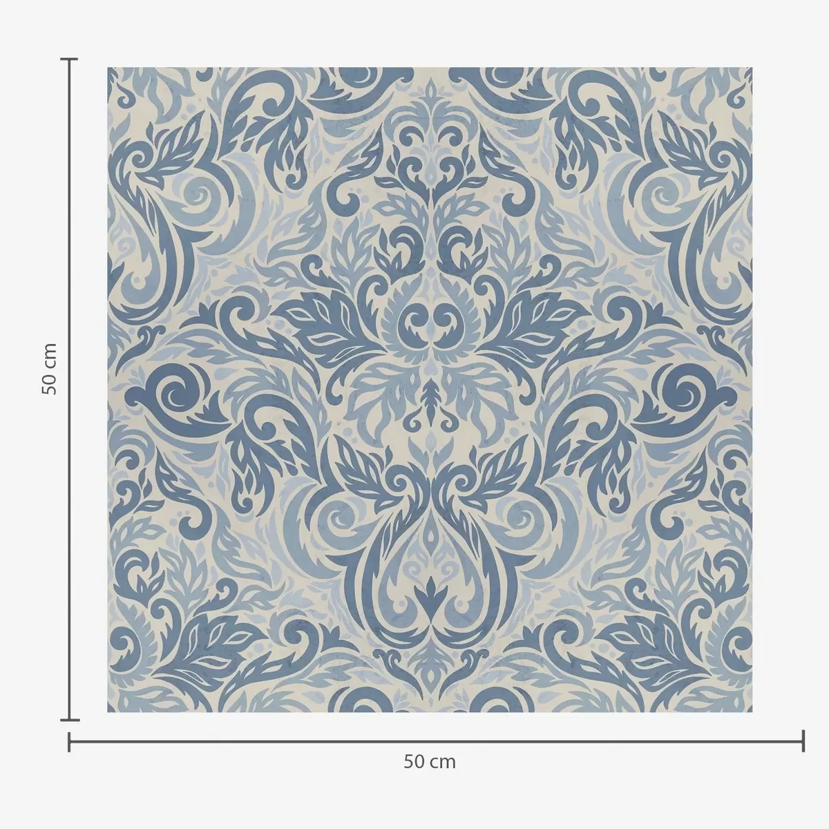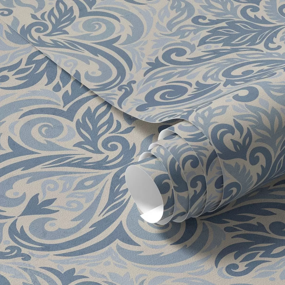 Papel tapiz Damasco clásico, motivos azules sobre fondo crema. Nr. a00826v1
