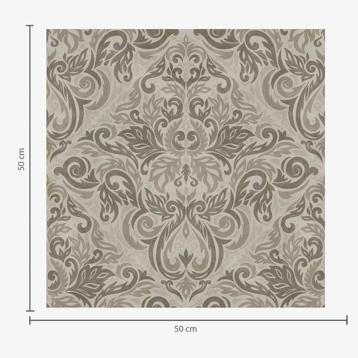 Papel tapiz Damasco en tonos cálidos gris-marrón sobre fondo claro. Nr. a00826v3