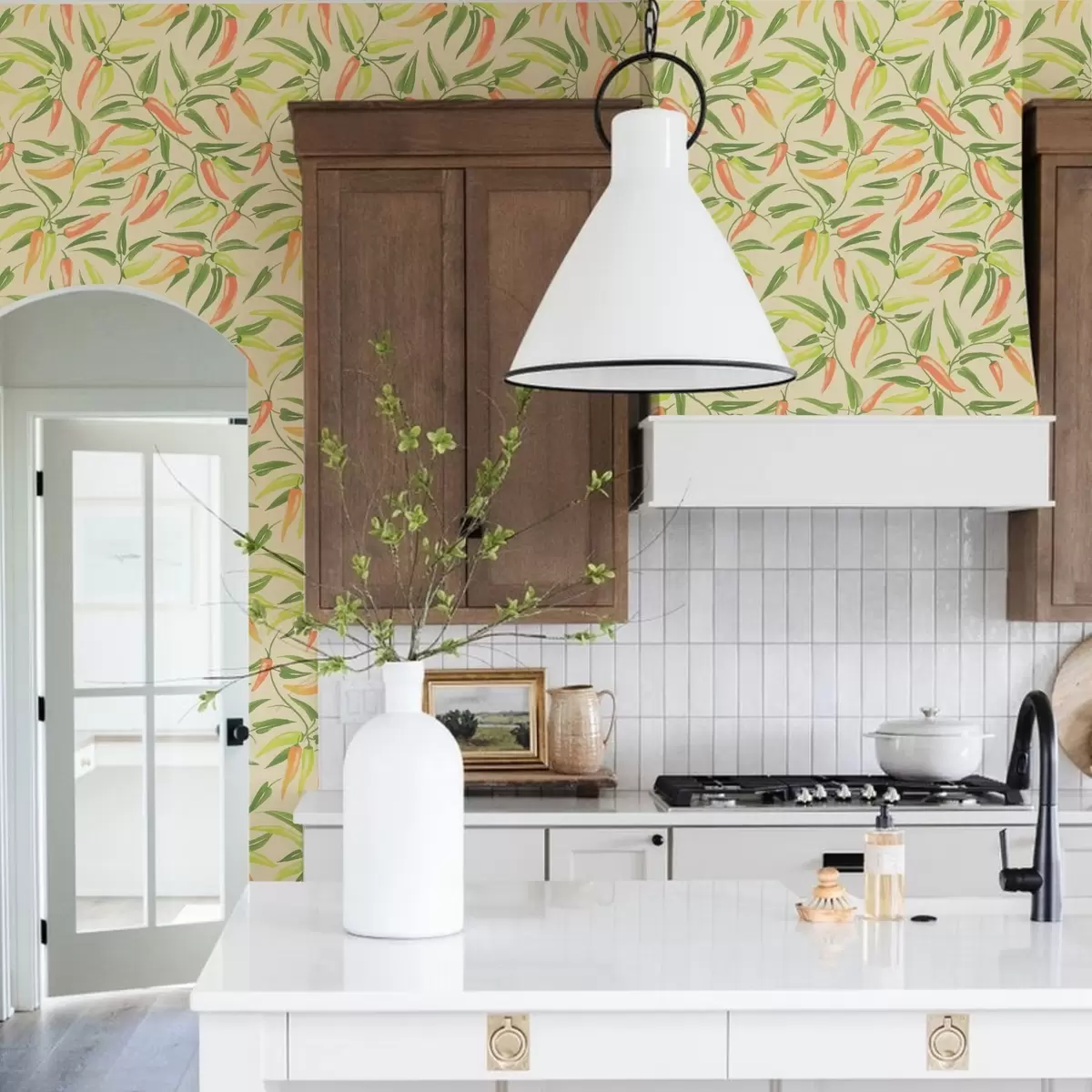 Papel tapiz Ramas con pimientos rojos y verdes sobre un fondo cálido Nr. a00829