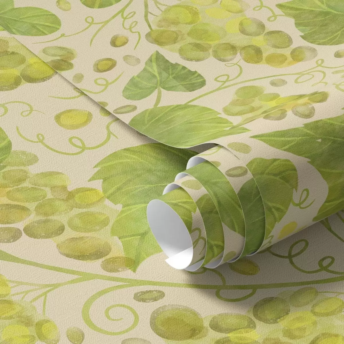 Papel pintado Uvas y hojas verdes sobre fondo claro a00834