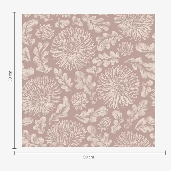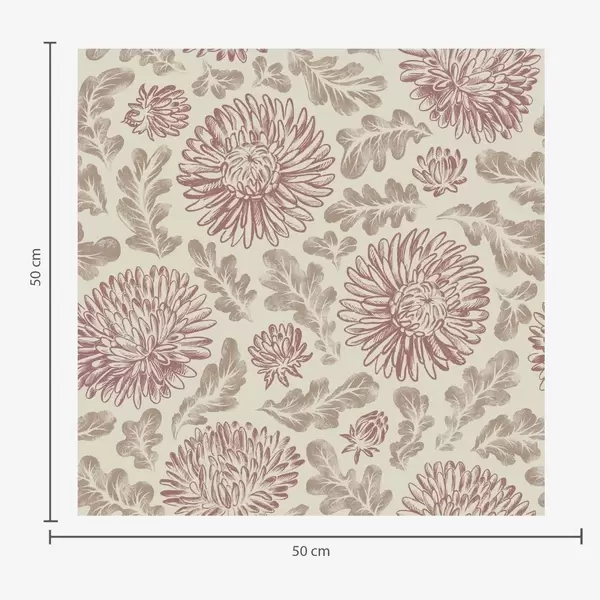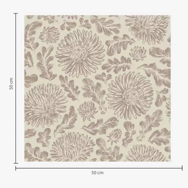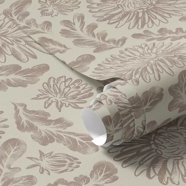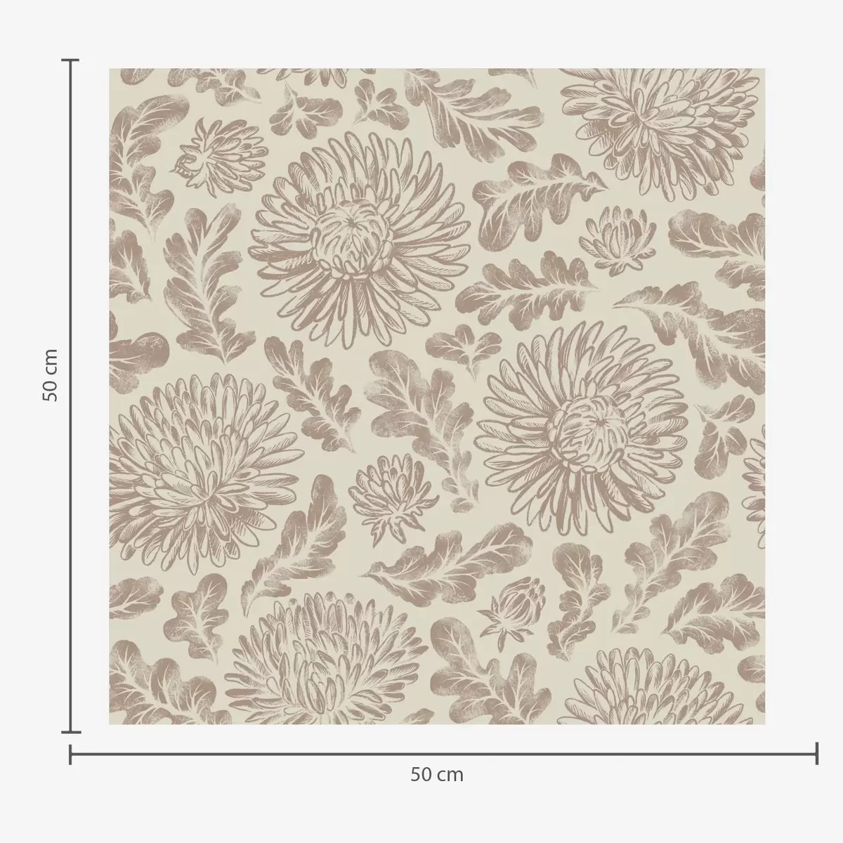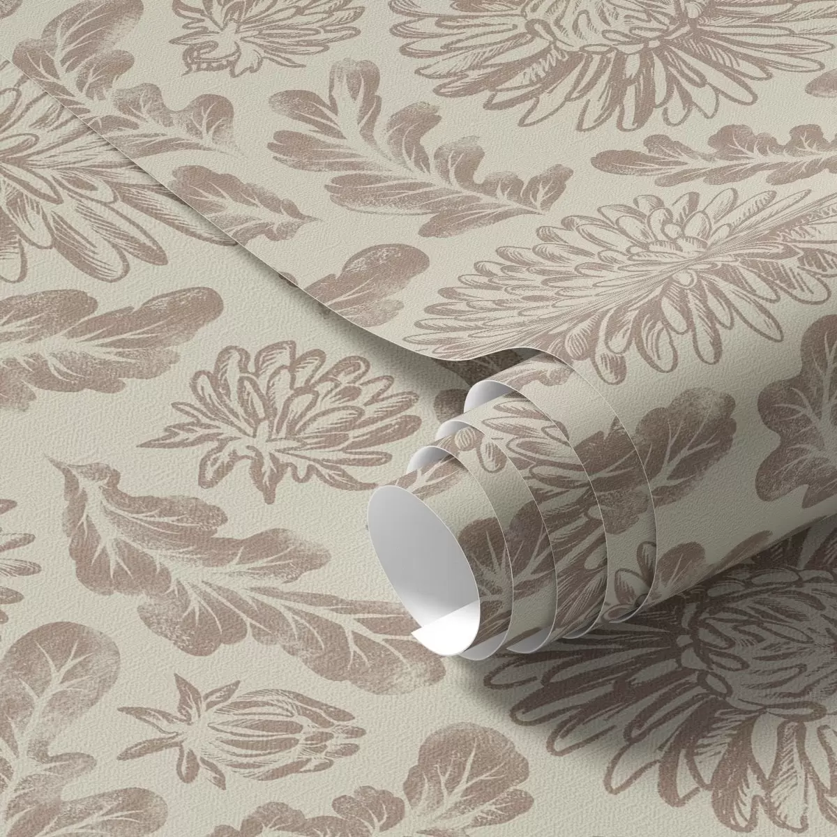Papel tapiz Crisantemos y hojas de roble en suave marrón beige. Nr. a00840