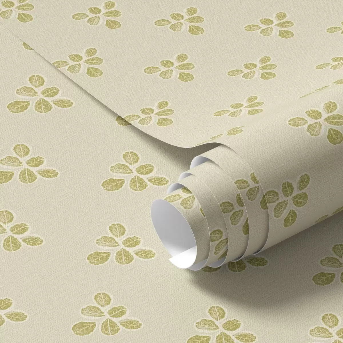 Papel tapiz Pequeña repetición: tríos de hojas sobre fondo crema-beige. Nr. a00848