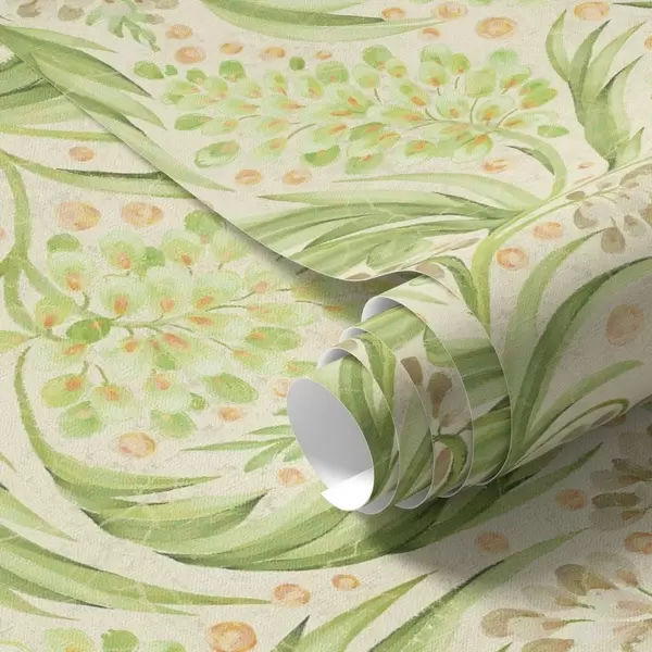 Papel tapiz Motivo floral ligero en suaves tonos verdes. Nr. a00853