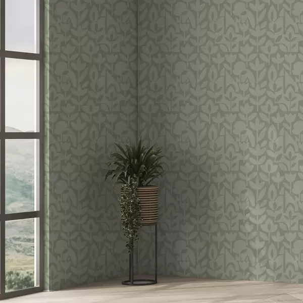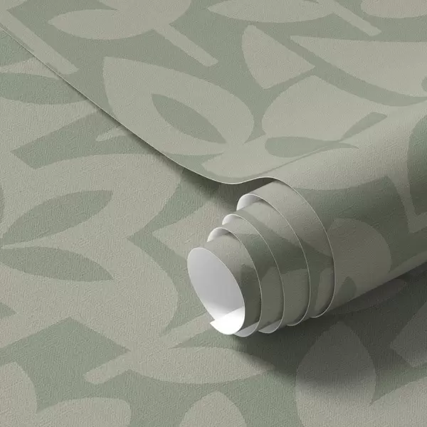 Papel tapiz Siluetas florales geométricas en suave color salvia. Nr. a00875v1
