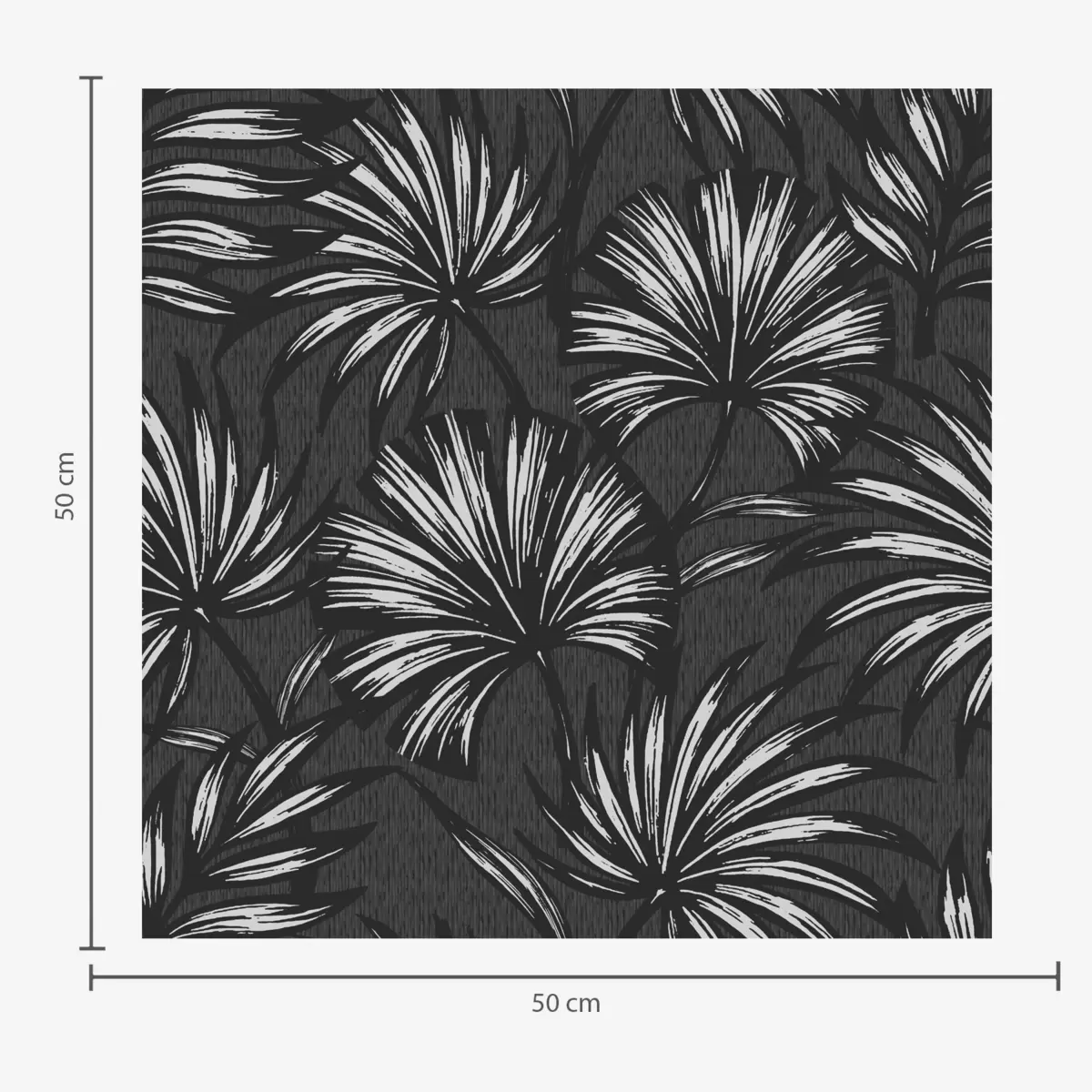 Papel tapiz Hojas de palmera blancas y negras sobre fondo oscuro Nr. a00891
