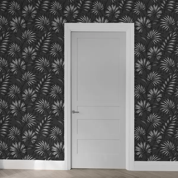 Papel tapiz Hojas de palmera blancas y negras sobre fondo oscuro Nr. a00891