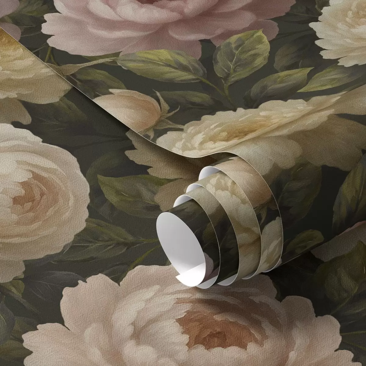 Papel tapiz Románticas peonías sobre un fondo botánico oscuro Nr. a00893