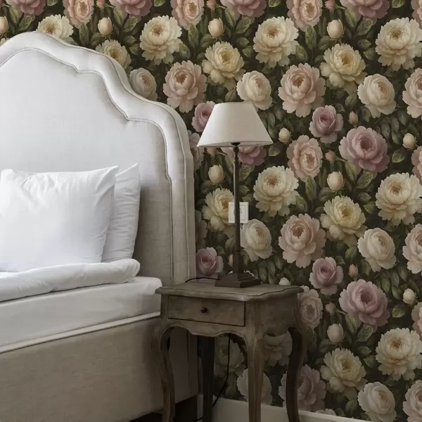 Papel tapiz Románticas peonías sobre un fondo botánico oscuro Nr. a00893