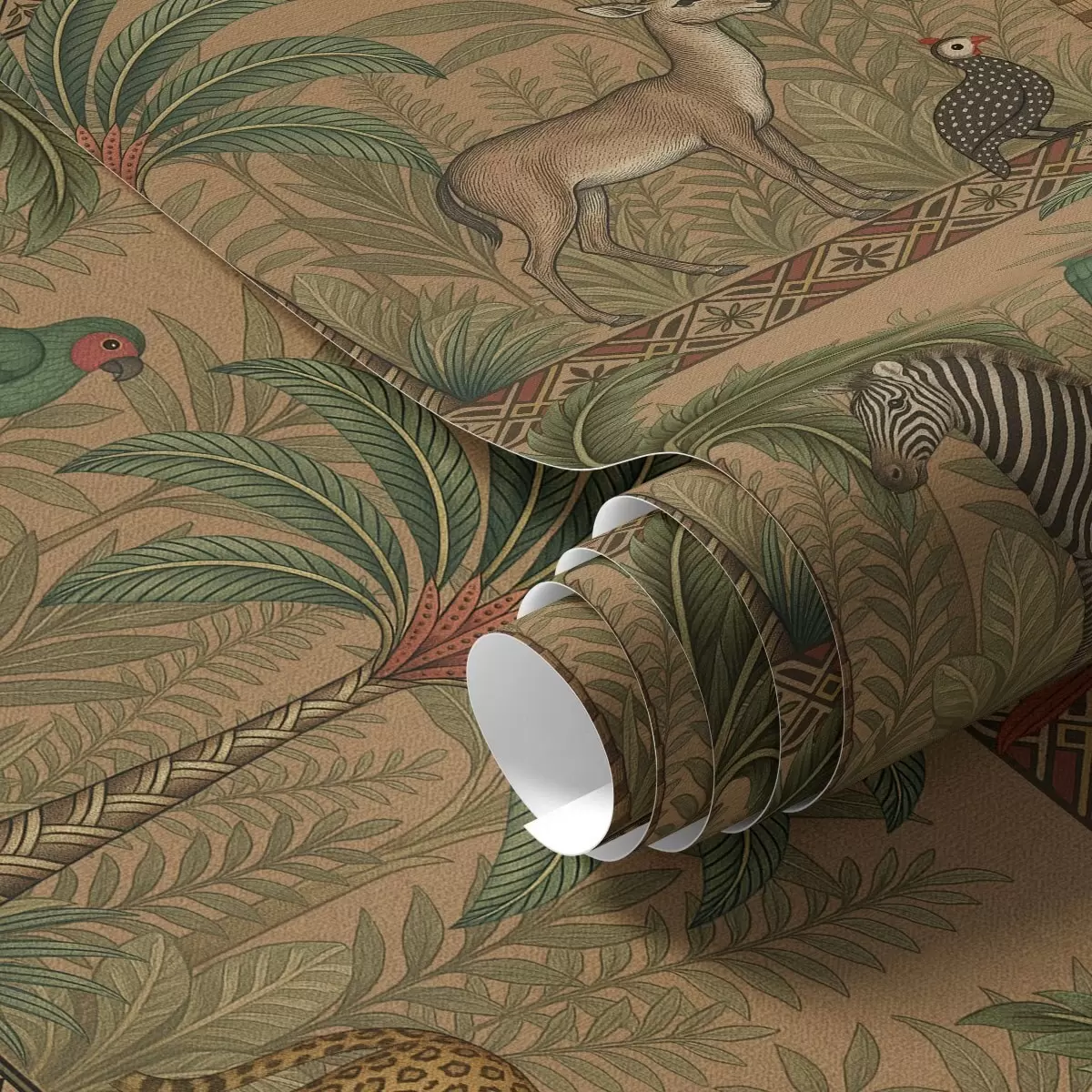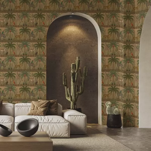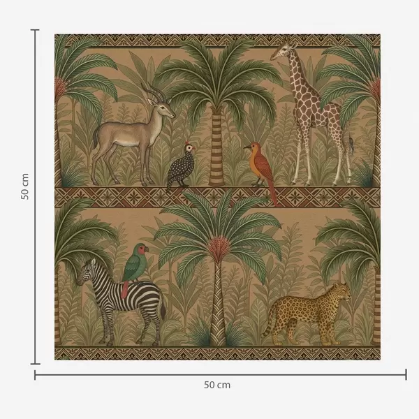 Papel tapiz Animales decorativos de la sabana entre palmeras y bordes Nr. a00898