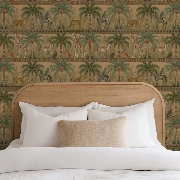 Papel tapiz Animales decorativos de la sabana entre palmeras y bordes Nr. a00898
