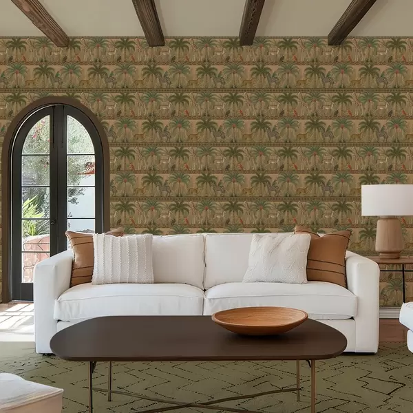 Papel tapiz Animales decorativos de la sabana entre palmeras y bordes Nr. a00898