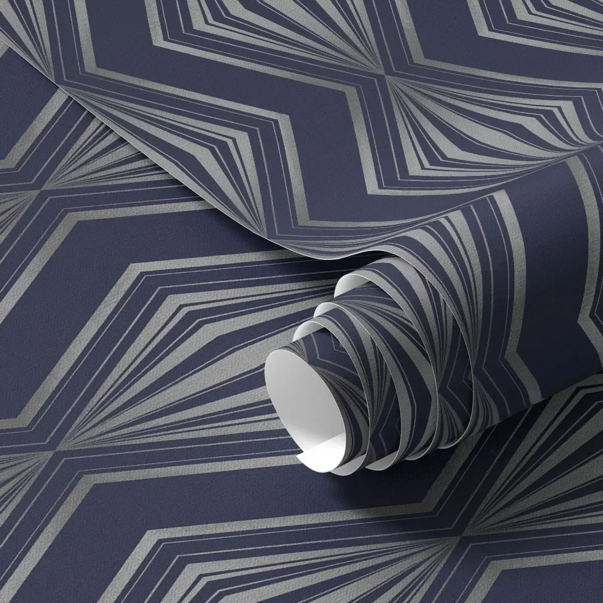 Papel tapiz Diamantes geométricos en forma de rayos sobre un fondo azul oscuro. Nr. a00925