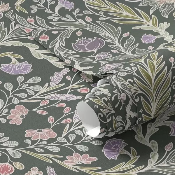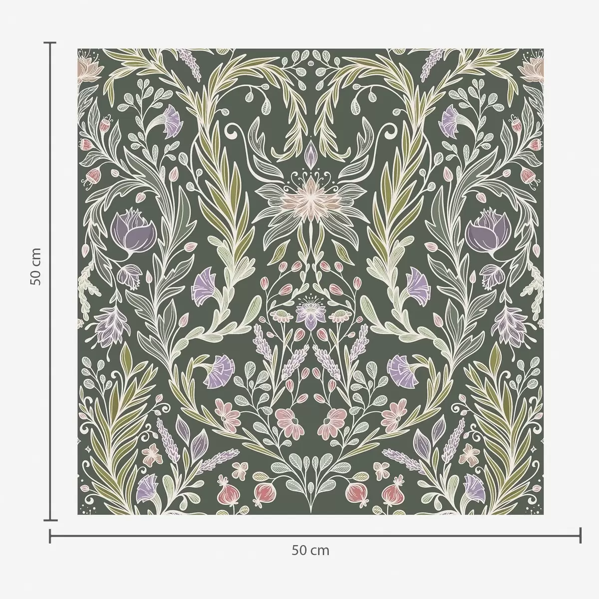 Papel tapiz Adorno floral simétrico sobre fondo verde oscuro. Nr. a00928