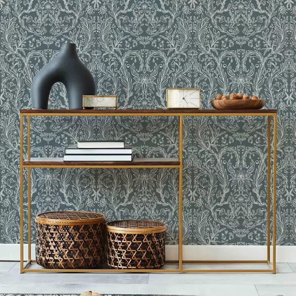 Papel tapiz Adorno floral lineal sobre fondo gris azulado Nr. a00929v1