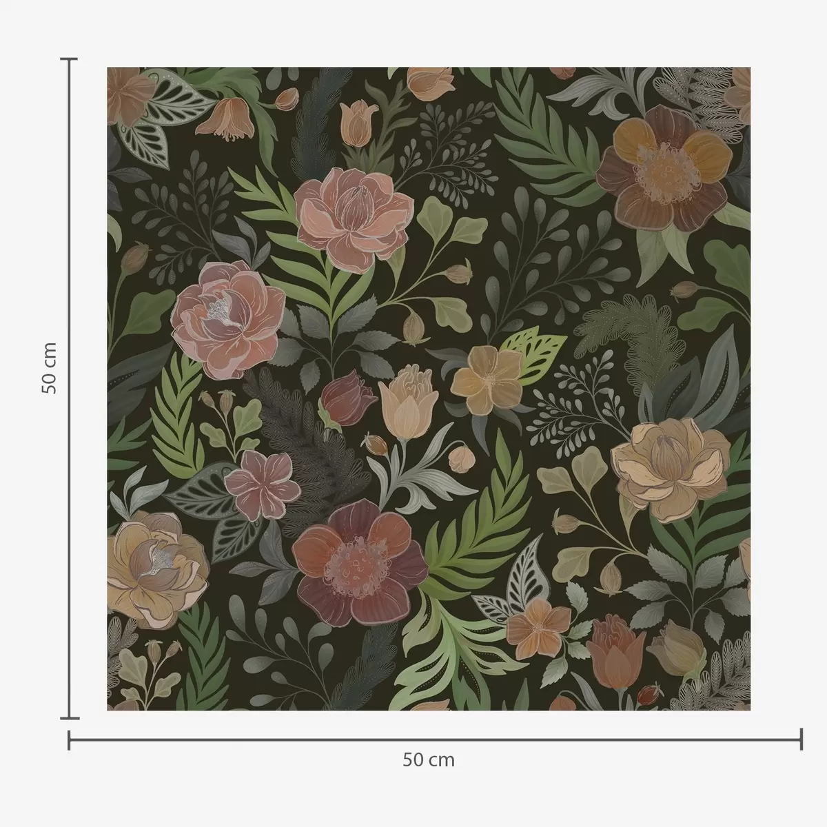Papel tapiz Ricas flores y vegetación sobre un fondo oscuro intenso. Nr. a00932