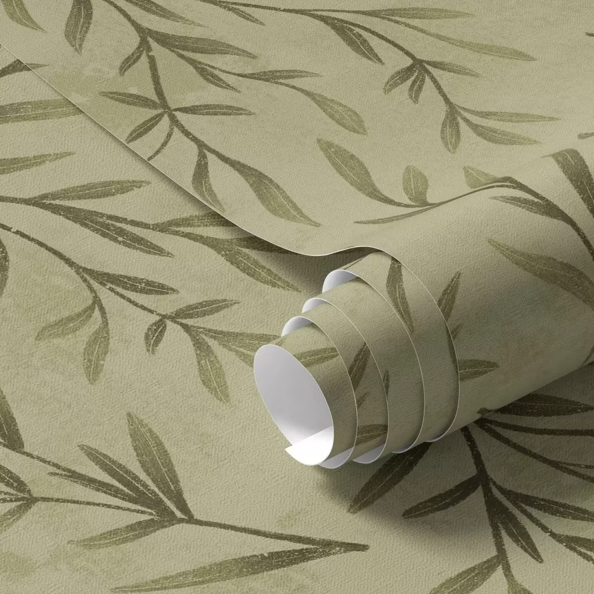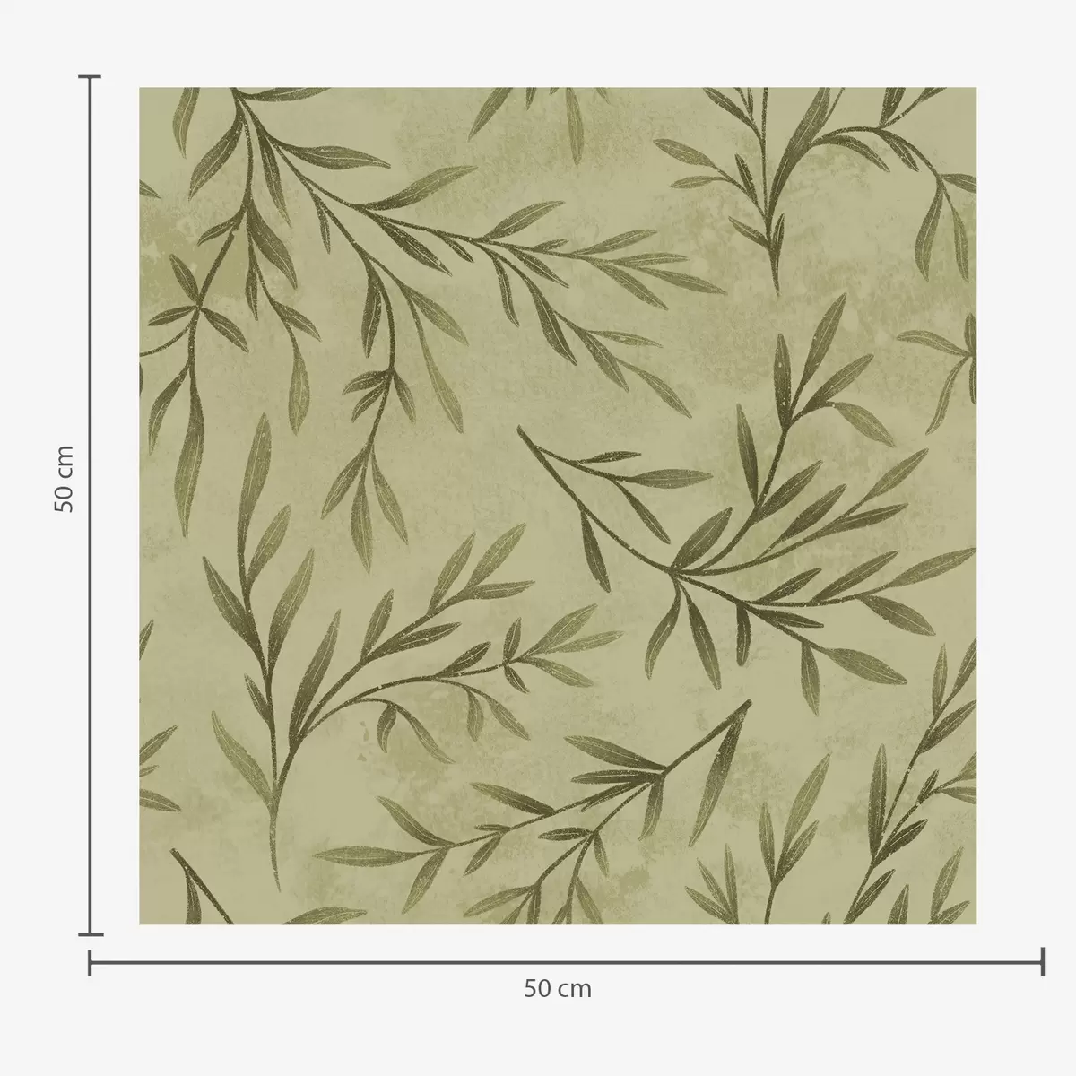 Papel tapiz Ramitas de olivo sobre un fondo texturizado de color amarillo verdoso apagado. Nr. a00936