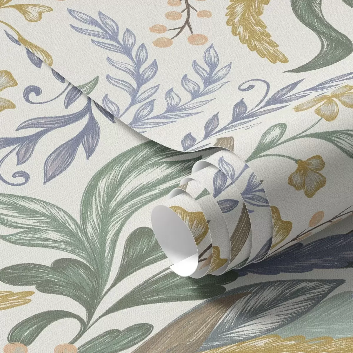 Papel tapiz Exuberante adorno floral en una suave paleta de colores pastel. Nr. a00939