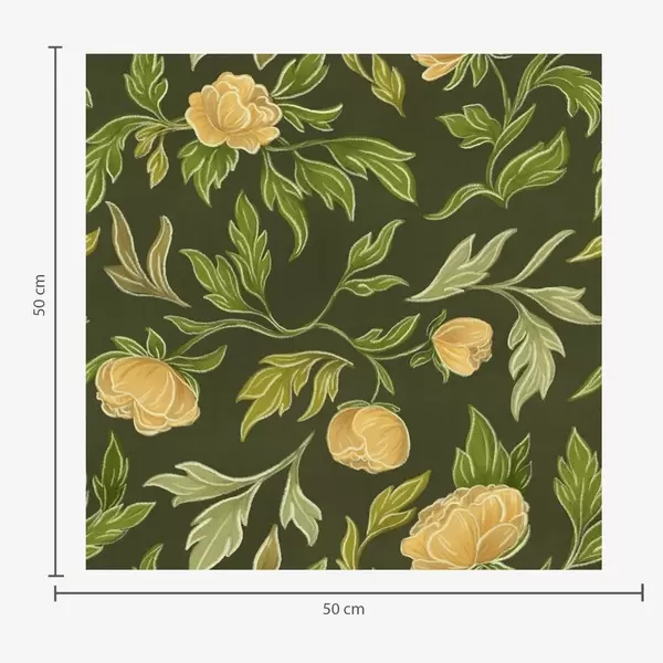Papel tapiz Peonías amarillas y follaje sobre un fondo verde claro suave. Nr. a00942