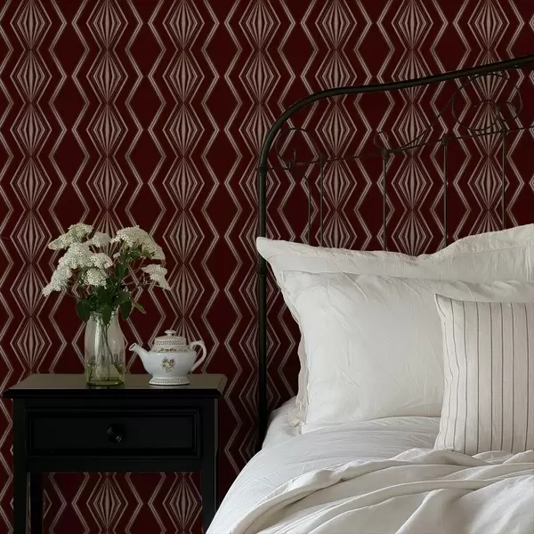 Papel tapiz Fondo burdeos con rombos rítmicos y líneas en zigzag. Nr. a00974