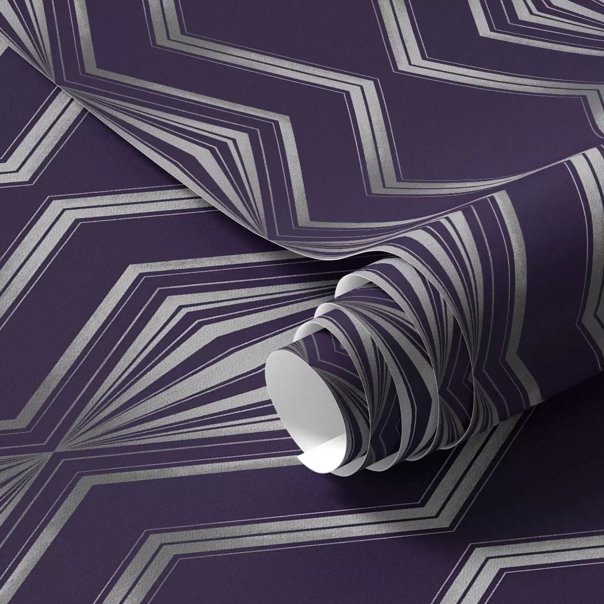 Papel tapiz Fondo violeta intenso con diamantes y líneas grises en zigzag. Nr. a00974v1